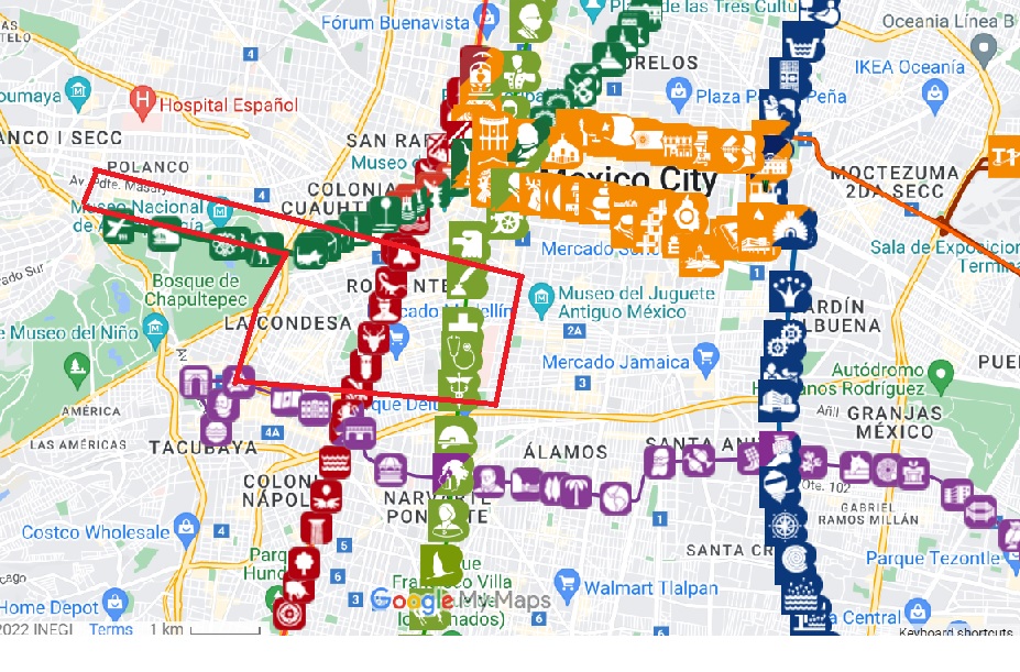 Mexico City has a good transportation network connecting Condesa, Roma and Polanco (near Chapultepec park) areas. Our favorite means of transporting is by metrobus which is an upgraded bus, routes are shown in the map below (we also market in red the area where we recommend students to stay). When you book housing do check for transport options nearby!We offer for $60usd each way. But the easiest way to move around in our city and cheapest would be by Uber.